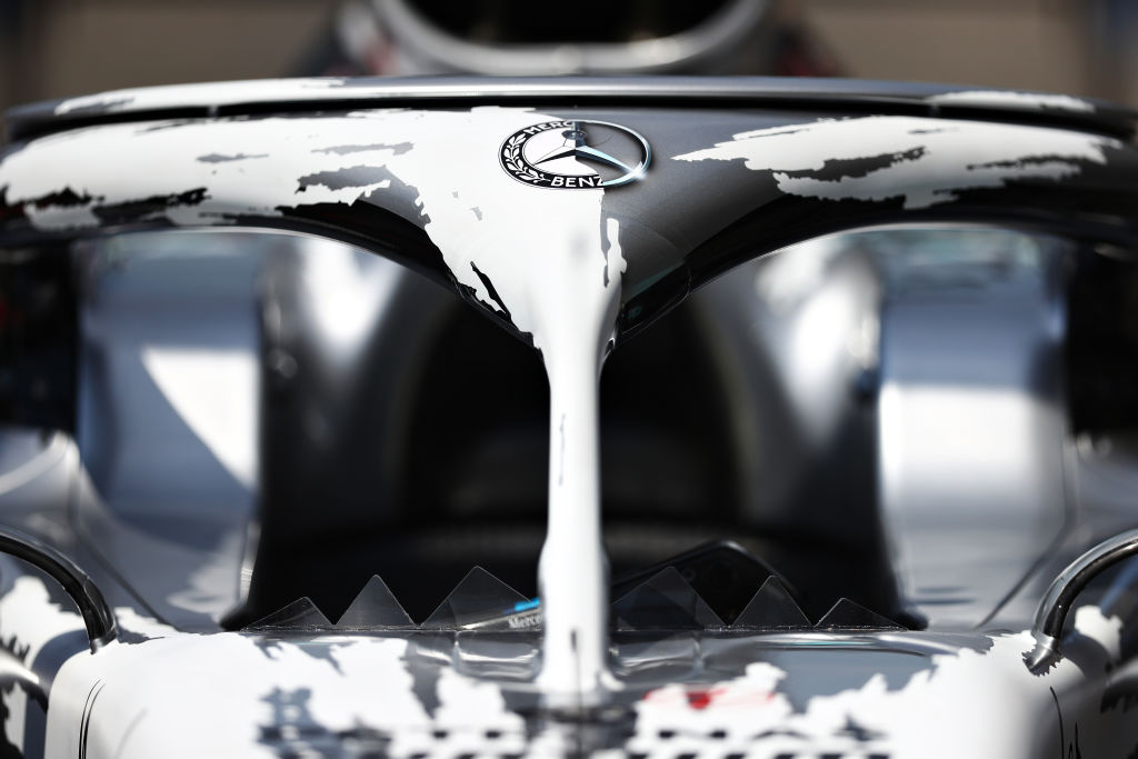 Колите на Хамилтън и Ботас са боядисани в класическото за Германия бяло, което прелива в традиционното за Мерцедес сиво. Номерата на двамата пилоти пък са оцветени в червено.