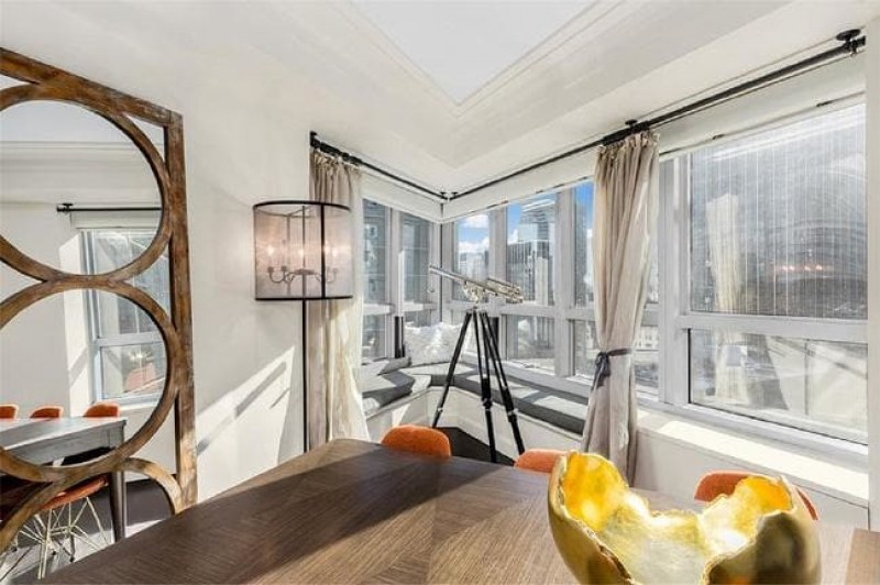 Разположен на 42 етаж на Metropolitan Tower, апартаментът е с площ 200 квадратни метра и предлага зашеметяваща гледка към Сентръл парк. Всекидневната се отличава с интересен цвят на мебелите, а разположението предоставя възможност за интегрирането на домашен офис, но и зона за почивка и гледане на телевизия.