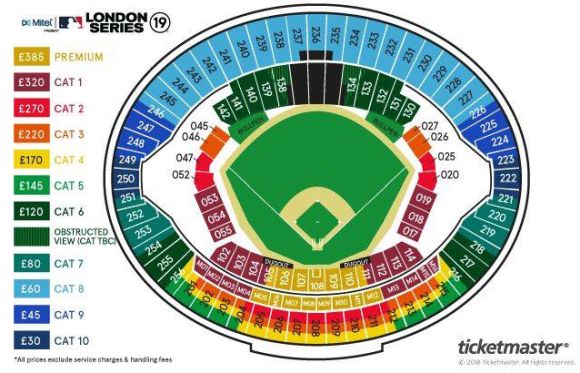 Бейзболният капацитет на стадиона на футболния Уест Хем ще бъде за около 60 000 зрители. Всеки потребител ще има право да закупи не повече от осем билета с една кредитна карта. Началните часове на мачовете между Бостън и НЙ Янкис в британската столица са 18,10 ч. местно време на 29 юни (събота) и 15,10 ч. на 30 юни (неделя).