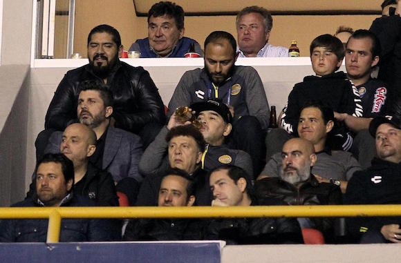 По време на реванша Марадона стоеше на трибуните, защото в първия двубой беше изгонен от съдията. Там той отнесе доста ругатни от феновете на домакините, но не се впечатли особено и дори изпи една бира. След загубата на Дорадос обаче нервите взеха връх и той скочи да бие един от журналистите, които го очакваха за интервю след края на мача. На записите се вижда как великият 58-годишният аржентинец замахва да удари някого, но е спрян от охраната.
