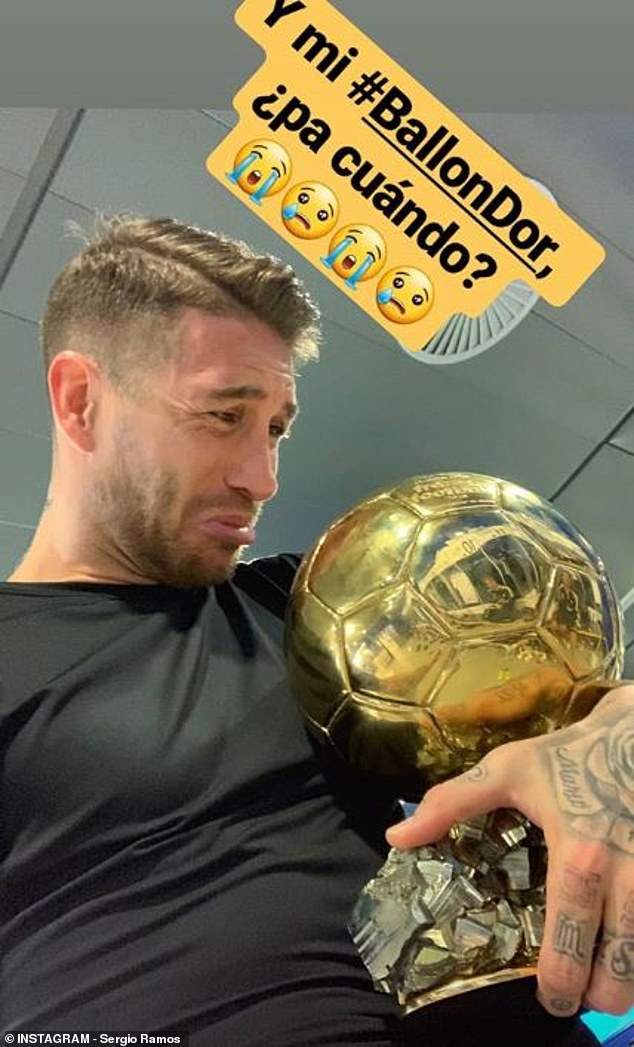 Новият носител на "Златната топка" Лука Модрич показа най-престижната индивидуална футболна награда, която му бе връчена официално снощи, на своите съотборници в Реал Мадрид. Целият отбор на "белите" позира за снимка с "топката" преди днешната тренировка, а непосредствено до Модрич бе капитанът на Реал Серхио Рамос. Испанецът сам публикува в "Инстаграм" две интересни снимки с отличието. В първата той засвидетелства уважението си към своя съотборник, докато в другата Рамос е прегърнал наградата и с ридаеща физиономия пита кога ще получи неговата "Златна топка".