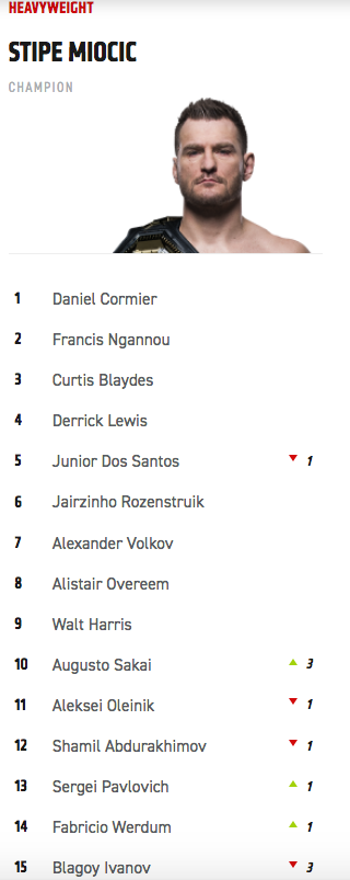 Българският боец в UFC Благой Иванов слезе до 15-ото място в ранглистата при най-тежките и има опасност да изпадне от нея. Той бе изпреварен от Фабрицио Вердум, Сергей Павлович и Аугусто Сакай.