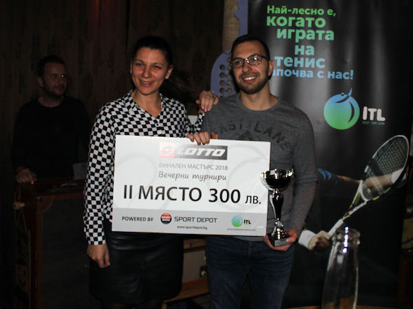 Мениджърът на Интерактив тенис Ивайло Цанков връчи плакети на победителите в традиционните за лигата категории. С приза за „изгряваща звезда на годината“ си тръгна Ивайло Боджаков. Специално отличие за постоянство получи Иван Бужев, който има зад гърба си 21 турнира в ИТЛ. Наградата „любовта ще спаси тениса“ взеха Цвети и Тео. Най-позитивните участници в лигата са Краси Ангелов и Искра Бочева. За най-дейно участие в организацията беше поощрена Мариана Грозданова. Дамите си тръгнаха с бутилка пенливо вино „Ботега“. Нашият Sportal.bg пък бе награден за принос в развитието на любителския тенис в страната.