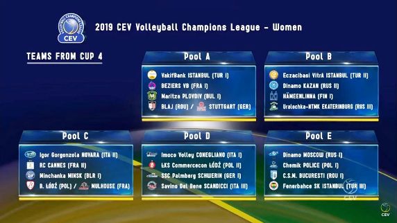 Българският волейболен първенец при жените Марица (Пловдив) попадна в Група А от 4-ия кръг в Шампионската лига, отреди тегленият преди малко в Будапеща жребий за груповата фаза на най-престижния европейски клубен турнир. В групата са още настоящите световни и европейски клубни шампионки ВакъфБанк (Истанбул, Турция), шампионът на Франция Безие, както и победителят от предстоящия сблъсък между румънския Волей Алба (Блаж) и германския Алианц МТФ (Щутгарт) от 3-ия кръг на турнира.