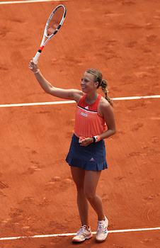 Поставената под №25 естонка Анет Контавейт поднесе една от големите изненади в схемата при дамите от началото на Откритото първенство на Франция, като елиминира в третия кръг една от фаворитките за титлата Петра Квитова. Контавейт пречупи поставената под №8 чехкиня след два тайбрека - 7:6 (6), 7:6 (4). По този начин бе сложен край на серията от 13 поредни победи на двукратната шампионка на "Уимбълдън". Вчера от турнира изненадващо отпадна и поставената под №4 украинка Елина Свитолина, която загуби в два сета от румънката Михаела Бузарнеску.