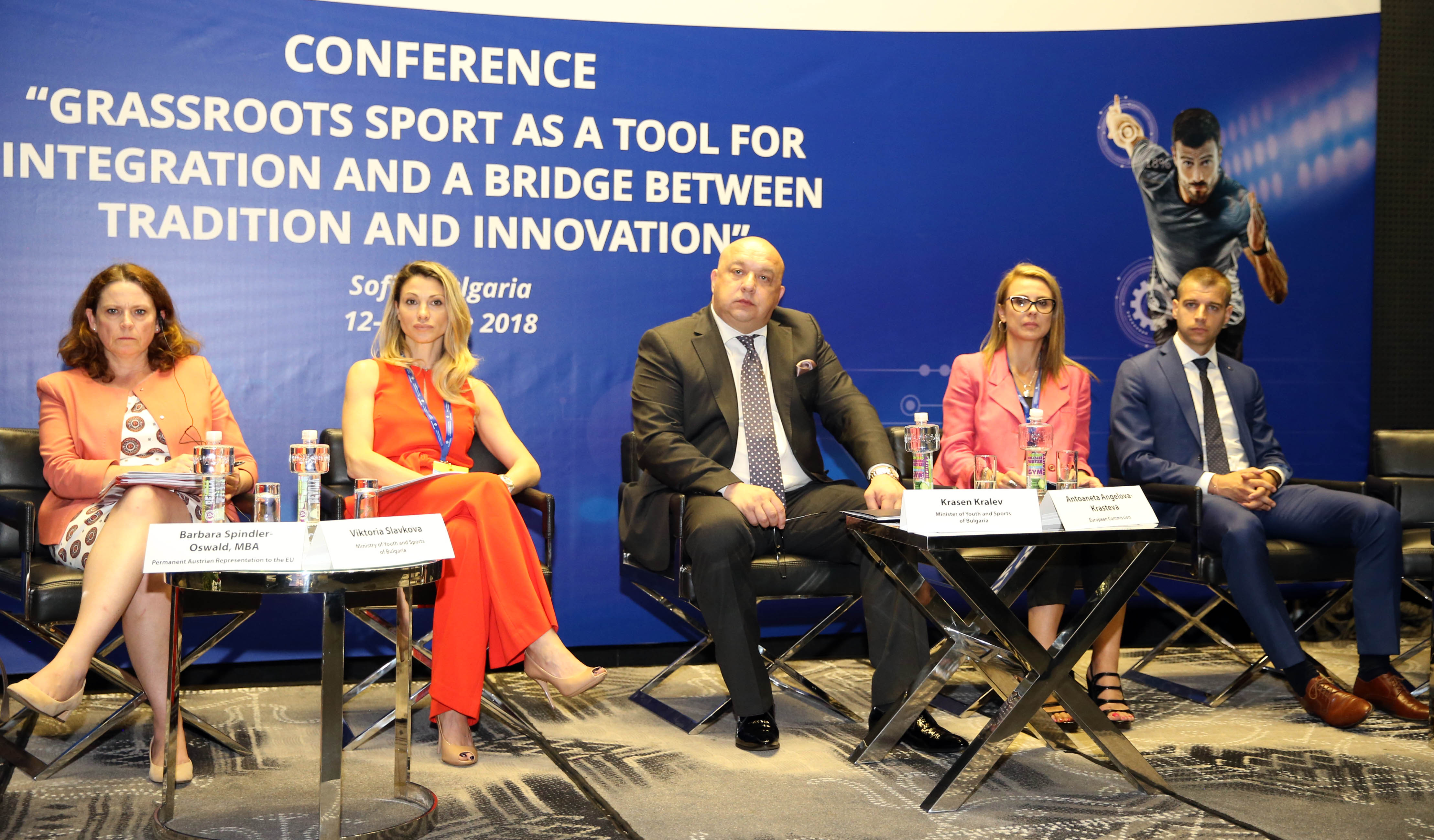 Министърът на младежта и спорта Красен Кралев откри конференцията „Спортът за всички като средство за интеграция и мост между традиции и иновации“. Това е последното събитие в сферата на спорта от Българското председателство на Съвета на ЕС, което се организира от Министерството на младежта и спорта и е съфинансирано по програма „Еразъм+“. Неговата основна цел е да се обменят мнения как иновациите и новите технологии могат да допринесат за това традиционните спортове и игри да бъдат използвани за по-добра физическа активност на населението.