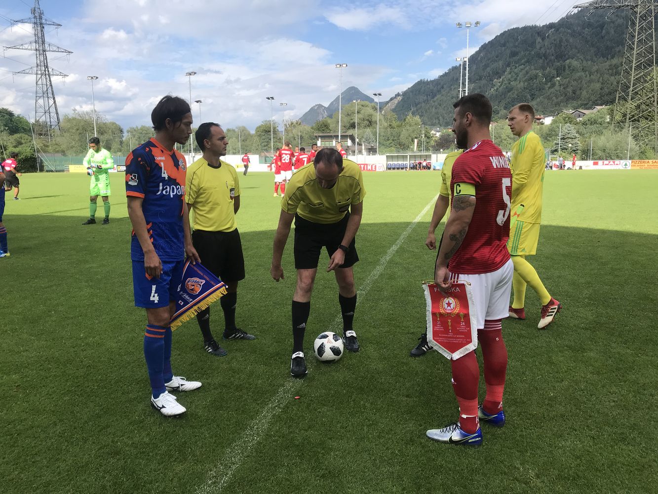 Тимът на Ел Маестро, който беше доста изморен от тежките тренировки през първите седмици от лагера, беше с класа по-добър от своя противник и напълно заслужено спечели. 15-ият тим в класирането на японската Джей лига стартира по-силно, но постепенно "червените" взеха инициативата, като на почивката водеха с два гола. Първо Тиаго Родригес беше точен, като се възползва от грешка на десния защитник на противника, който се опита да върне топката към своя вратар, но играчът с №20 при "червените" пресече топката, преодоля противника, след което отбеляза първото попадение за тима на австрийска земя през това лято.