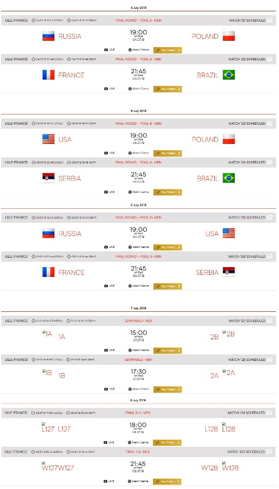 В другата Група В са европейският шампион Русия, САЩ и световният първенец Полша, които приключиха съответно 2-и, 3-и и 6-и в груповата фаза.