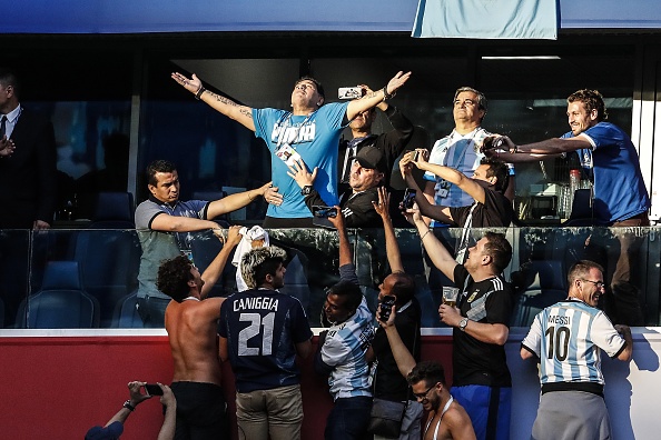 Легендата на Аржентина и световния футбол Диего Армандо Марадона отново беше в център на вниманието по време на важния мач на "гаучосите". На стадион "Санкт Петербург Арена", където Лионел Меси и компания играеха решителен мач с Нигерия за класиране на осминафиналите, великата десетка първо изпадна в екстаз след попадението на Меси в 14-ата минута.