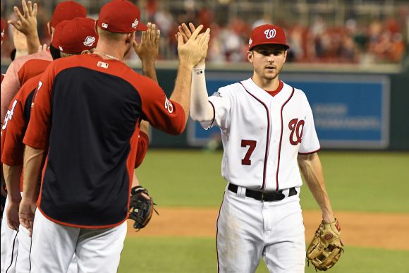 Откриващият хитър на Нешънълс зададе тон със соло хоумрън в затварянето на 4-тия ининг за 1:9. В 5-ия столичани върнаха още 4 точки, а в 6-ия вече водеха, след като Търнър прехвърли оградата за втори път – този път при пълни бази за първия голям шлем в кариерата си. В 7-ия шортстопът вкара още 2 точки с единичен хит и завърши мача с личен рекорд от 8 RBI.