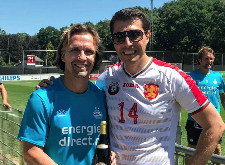 Както при последните си срещи със звезди от такъв калибър, Кирил и този път не пропусна да зарадва бившия холандски национал с бутилки марково българско вино.