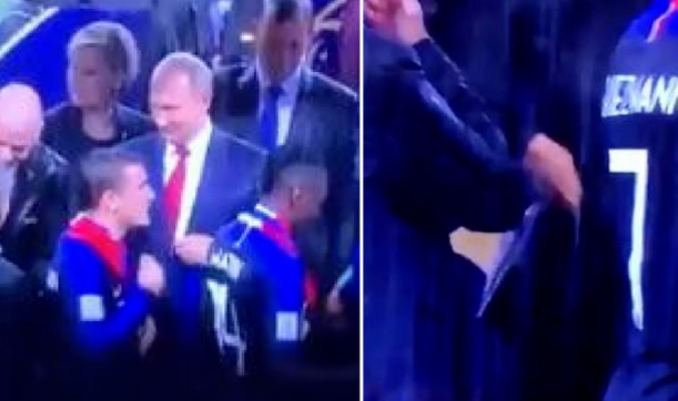В социалната мрежа плъзнаха кадри, от които се вижда как русата дама, вероятно длъжностно лице от ФИФА, прибира отличието в джоба си, в момент, когато Антоан Гризман преминава покрай нея.