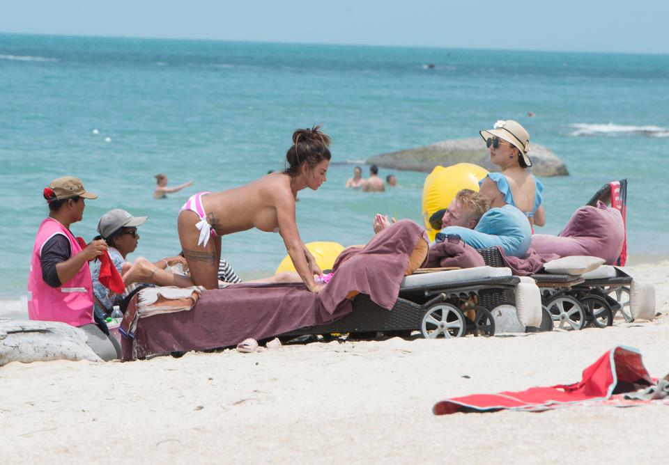Бившата футболна мъжемелачка Кати Прайс събира тен по монокини в Тайланд. Британката, известна в общественото пространство като Джордан, замина на почивка в югоизтичната азиатска държава заедно с новата си сексиграчка Крис Бойсън.