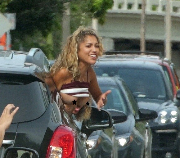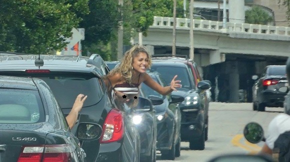 Докато е бил в задръстване на магистрала в Маями, от съседната кола се е появила негова фенка, вдигнала блузата си, за да го поздрави.