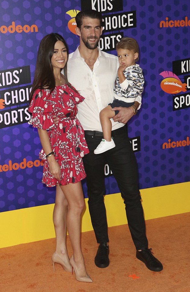33-годишната суперзвезда, който прекрати своята кариера, заведе наследника на детски спортни награди. Заедно с тях беше и съпругата на най-успешния плувец в историята - Никол Джонсън. Те бяха оставили другия си 6-месечен син Бекет у дома.