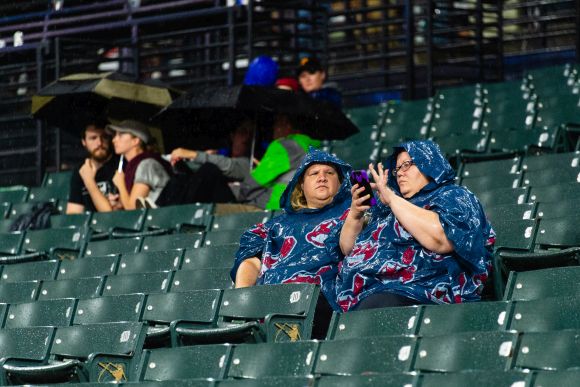 Сблъсъкът от Интерлигата нощес бе прекъсван три пъти заради валежи над ст. "Прогресив Фийлд" и след общо 2,03 ч. пауза бе прекратен преждевременно. Първото хвърляне се забави с 55 минути, после играта бе спряна за 27 минути в 3-тия ининг, а накрая съдиите изчакаха 41 минути, преди да обявят резултата след 6-ия за официален.