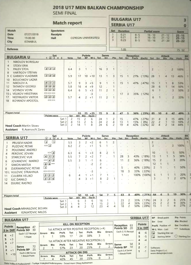 В битката за титлата българите ще се изправят срещу връстниците си от Турция, които надиграха Гърция с 3:0 (25:17, 25:9, 25:19). Сърбия и Гърция ще спорят за третото място.