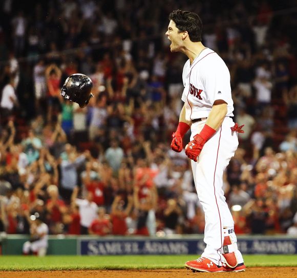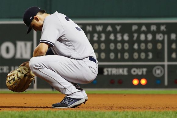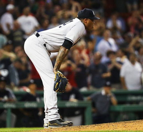 Двубоят на ст. "Фенуей Парк" отиваше към почетен успех на "янките" в четворния комплект. Гостите от Бронкс имаха аванс от 3 точки и 2 аута в последната си защита, а на възвишението беше страховитият клоузър Аролдис Чапман. Само че този път кубинецът не беше в обичайния си ритъм и пропусна да запази победата на своите за първи път от 4 май.
