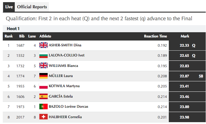 Ивет влезе във финала с трето най-добро време от полуфиналите. Освен Ашър-Смит, холандката Джамиле Самюел бе по-бърза от българката с време 22.58 секунди.