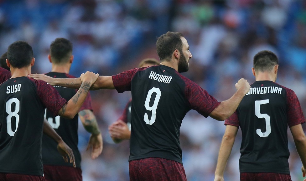 Милан обаче успя бързо да се съвземе и в 4-ата минута резултатът бе изравнен. Сусо напредна отляво и стреля опасно, ударът му бе спасен, но топката попадна в Игуаин, който с шут извън наказателното поле я прати неспасяемо във вратата за 1:1.