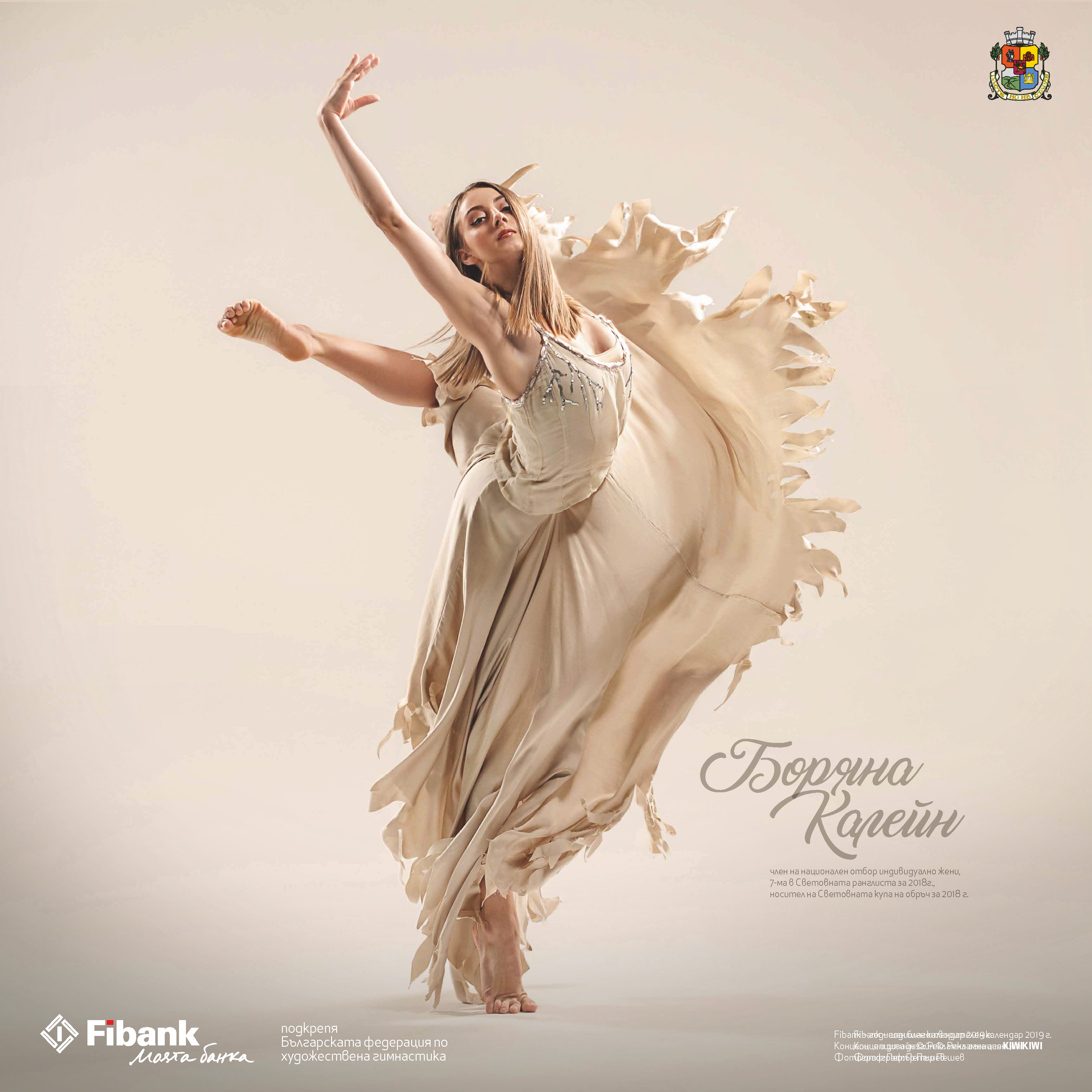 Освен кадрите на БФХГ, ще има и фотографии на Fibank, които са част от благотворителен календар на банката с момичетата от националния отбор по художествена гимнастика.