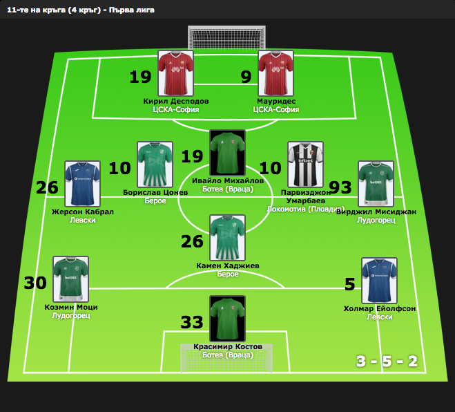 Опитният бранител изигра силен мач срещу преродения тим на Витоша. Румънецът действаше солидно в защита, като се отчете с цели 11 отнети топки от съперникови футболисти и изигра важна роля при победата. (1)