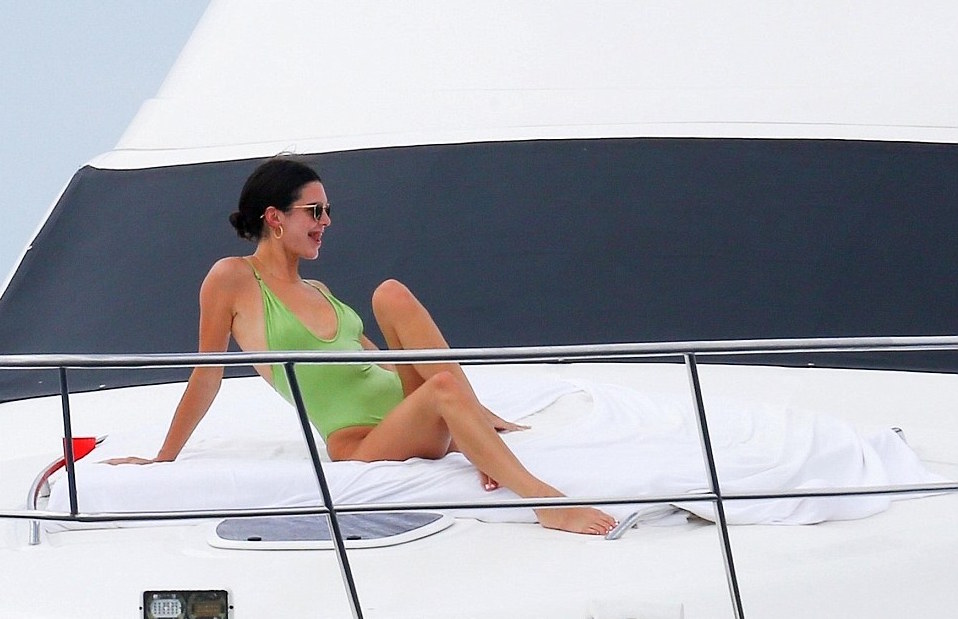 Кендъл веднага привлече вниманието на папараците. Момичето от първа страница на VOGUE бе избрала да се припича на слънцето в цял бански в много модерния в момента цвят лайм.