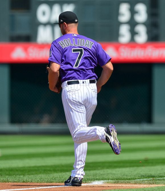 В края на миналия месец Холидей подписа договор за Майнър лийг със "скалистите", които вчера го призоваха от филиала Албукърки Айсотоупс за последния мач от домакинската серия срещу Сан Диего Падрес. Оказал се без бутонки, Мат беше спасен от вицепрезидента на тима Джим Келог, който нареди да се вземат обувките от запазената в клубния музей униформа на аутфилдера от Световните серии '07.