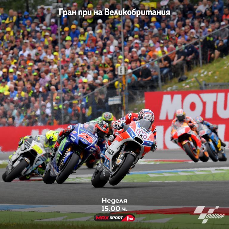 Легендарната писта Силвърстоун ще е домакин на поредния кръг от Moto GP този уикенд. Гран при на Великобритания е сред любимите състезания на легендата Валентино Роси, който има общо 8 успеха в своята кариера на Силвърстоун и Донингтън Парк. Лидерът в генералното класиране Марк Маркес отново е основният фаворит за победата, но и пилотите на Дукати Хорхе Лоренсо и Андреа Довициозо също имат своите надежди. Стартът за Гран при на Великобритания в MotoGP е в неделя от 15:00 часа пряко по MAX Sport 1.