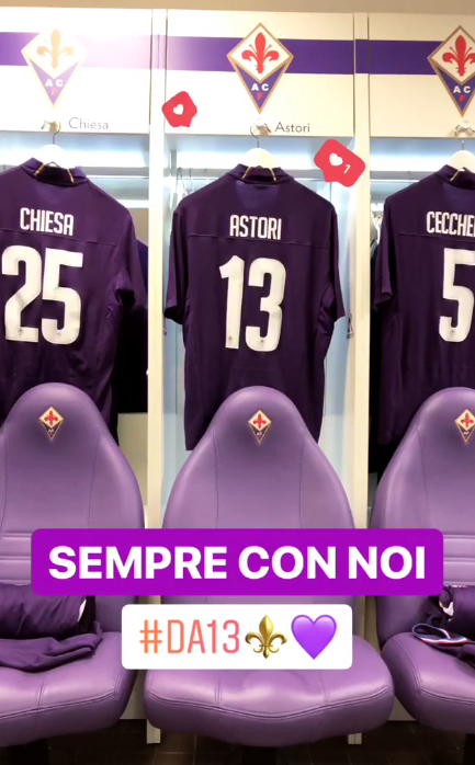 Отборът на Фиорентина не забравя своя бивш капитан Давиде Астори и това бе потвърдено днес в социалните мрежи. Починалият в началото на месец март италиански защитник присъства духом в съблекалнята на “Ла Виола”. Виолетовата фланелка с номер 13 бе до тази на Федерико Киеза и Федерико Чекерини преди срещата на флорентинци с Киево, спечелена от тима на Стефано Пиоли с 6:1. Под снимката бе добавен текст: “Винаги с нас #DA13”.