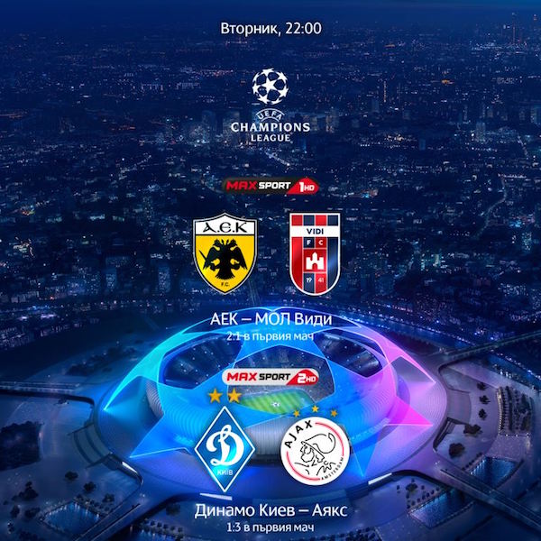 По същото време – във вторник от 22:00 часа, MAX Sport 2 ще излъчи реванша между два редовни участника в груповата фаза на Шампионската лига – Динамо Киев и Аякс. Холандският вицешампион пристига в Украйна със самочувствие и добър аванс след 3:1 на Йохан Кройф Арена, но домакините неведнъж са наваксвали два гола пасив в подобни двубои.