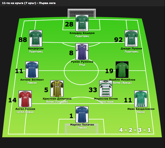 Полузащитникът на тима от Варца е една от приятните изненади в тима на Сашо Анеглов. Халфът е много силен в средната линия на тима от началото на сезона и срещу Локомотив (Пловдив) направи пореден добър мач, като не спести сили срещу играчите на “смърфовете”. (2)