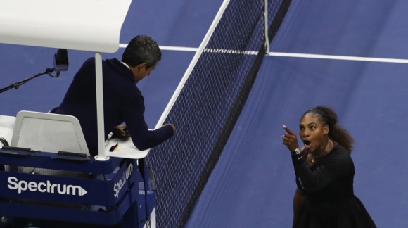 “Не можеш ли просто да я оставиш да спечели?”, пита съдията на стола Наоми Осака на същата карикатура.