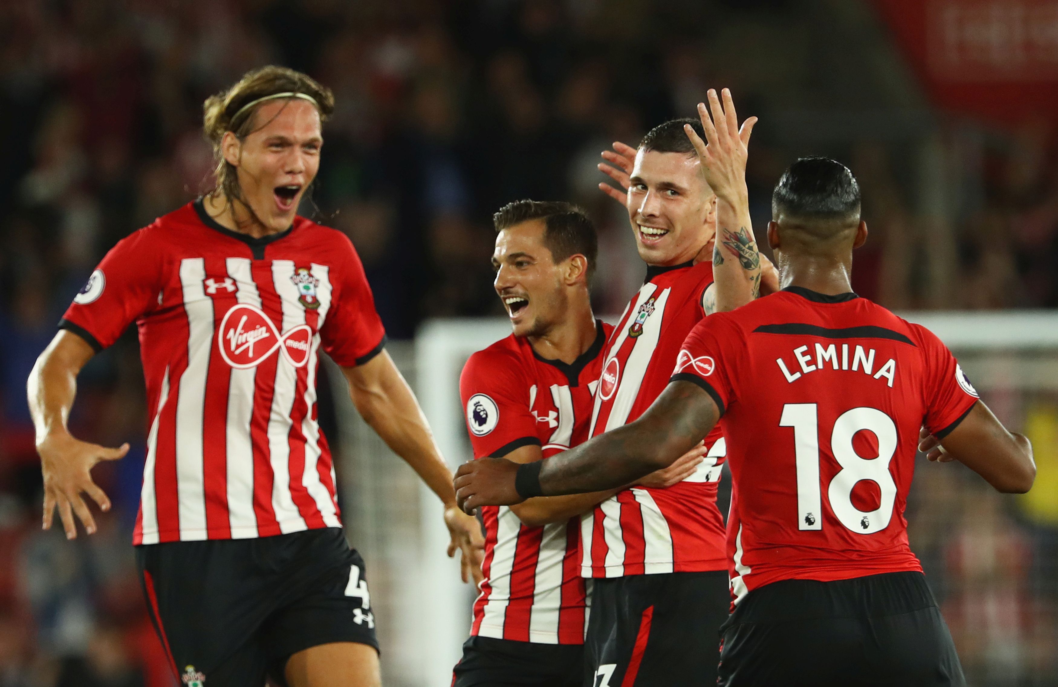 "Светците" поведоха в 35-ата минута с много красив гол на Пиер-Емил Хьойберг. Датчанинът овладя пред наказателното поле и с много прецизен шут насочи топката неспасяемо в далечния ъгъл на вратата.
