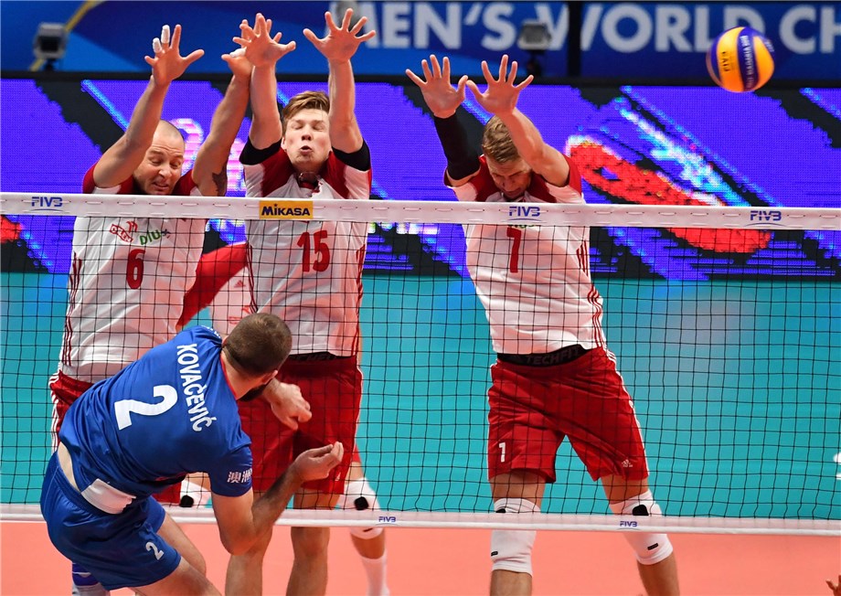 Сърбия се класира на полуфиналите на световното първенство по волейбол за мъже, въпреки че загуби с 0:3 (26:28, 26:28, 22:25) срещу Полша в мач от група "J" на турнира. Сърбите са втори с актив от 3 точки след победа над домакина Италия, който ще си оспорва последното място с поляците по-късно днес.