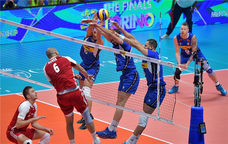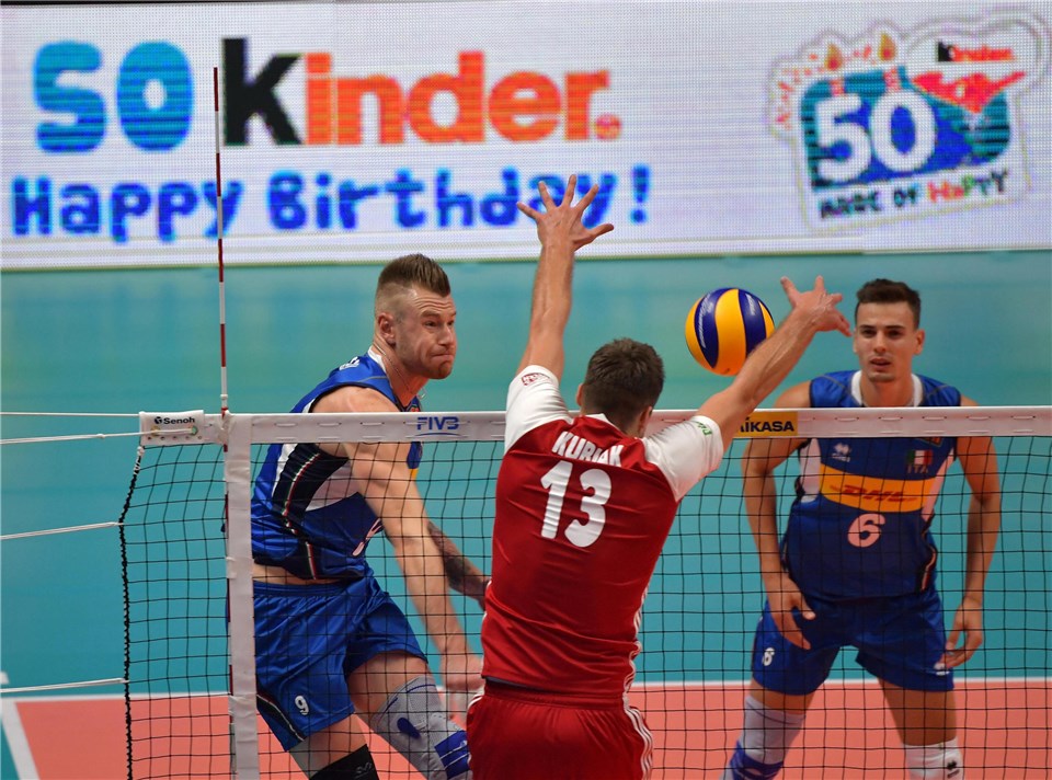 Домакините на финалите на Световното първенство от Италия завършиха с чест участието си на Мондиал 2018. "Скуадра адзура" надделя над действащия шампион Полша с 3:2 (14:25, 25;21, 18:25, 25:17, 15:11) в последния си мач от Група J на финалната шестица на шампионата на планетата, игран късно тази вечер в пълната зала "Пала Алпитур" в Торино.