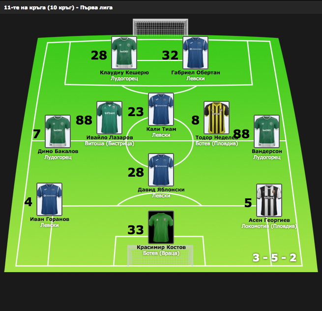 Страхотно представяне на полузащитника в мача с ЦСКА-София. Доктора, както вече го наричат феновете, действаше безкомпромисно в халфовата линия на “сините”, като спечели множество спорни топки и единоборства с противниковите футболисти. (1)
