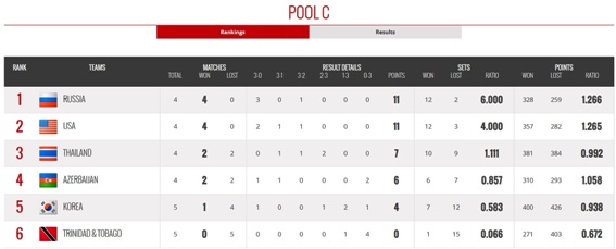 Четирите тима ще се слеят в Група F, мачовете от която ще се играят в Осака, с първите 4 отбора от Група С - световните шампионки от САЩ, Русия, Тайланд и Азербайджан, като ще играят помежду си. Съставите влизат във втората фаза на първенството с абсолютно всичките си показатели от първата - победи, загуби, точки, геймово и точково съотношение