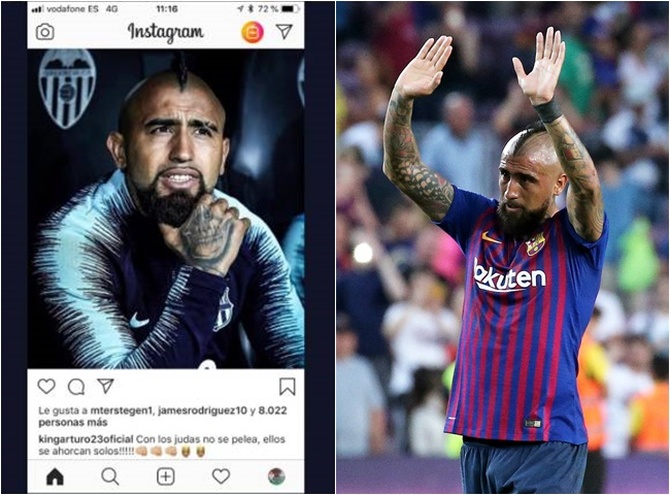 Тази идея обаче очевидно не се нрави на Видал, който пусна сърдита емотикона в социалните мрежи след хубавата победа над Тотнъм. „На мен не ми е казал нищо, камо ли че е сърдит”, иронизира Валверде своя играч, комуто срещу Валенсия нареди да загрява, а накрая не го пусна изобщо в игра. Минути по-късно халфът се отбеляза в Инстаграм с послание към онези, които го предават. „С Юда не се бориш, той се обесва сам”, написа чилиецът в акаунта си, като добави свити юмруци и кралски символи, съответстващи на прякора му: Крал Артуро.
