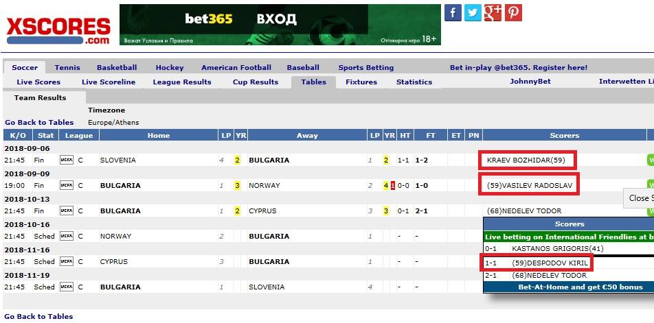 Читател на Sportal.bg ни напомни за любопитна подробност, случила се в досегашните мачове на България срещу Словения, Норвегия и Кипър. Във всеки един от въпросните двубои трикольорите са отбелязали гол в 59-ата минута.