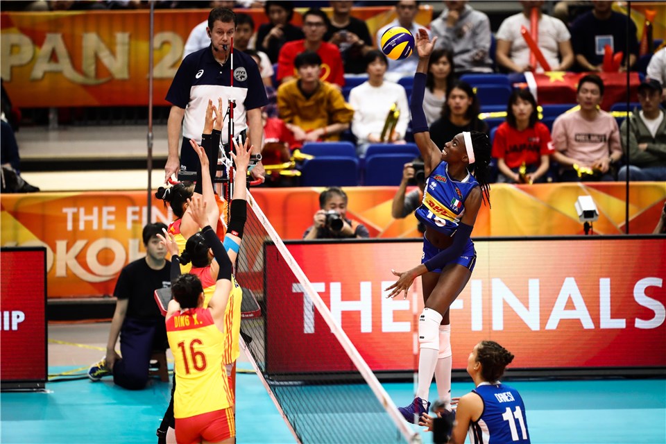 Волейболистките на Италия се класираха на финала на световното първенство в Япония, след като във втората полуфинална среща измъкнаха драматична победа над олимпийските шампионки от Рио 2016 от Китай с 3:2 (25:18, 21:25, 25:16, 29:31, 17:15) в Йокохама Арина“ пред 7000 зрители.