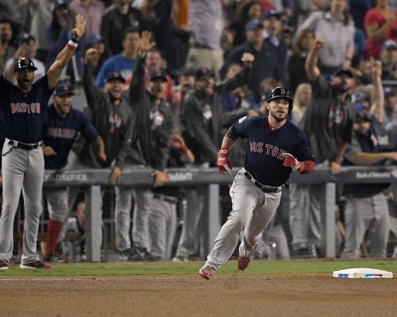 Бостън Ред Сокс обърна Лос Анджелис Доджърс с 9:6 като гост и вече докосва шампионската титла в МЛБ. "Червените чорапи" поведоха с 3-1 победи в Световните серии и ще имат три шанса да затворят финала – един тази вечер в последния мач на ст. "Доджър" в Ел Ей и евентуално още два на своя "Фенуей Парк" във вторник и сряда. За клуба това би била четвърта Купа на комисионера в последните 15 сезона и общо девета в историята.