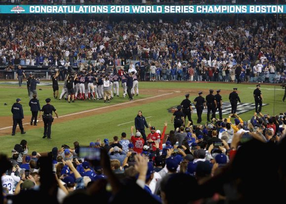 "Червените чорапи" затвориха финала безапелационно с 5:1 като гости в мач №5 и вдигнаха Купата на комисионера насред ст. "Доджър" в Ел Ей. Всички точки в последната среща за 2018 г. влязоха с хоумръни. Тон за гостите зададе Стив Пиърс с двоен изстрел срещу Клейтън Кършоу (L 0-2) още в 1-вия ининг. В затварянето на частта домакините отговориха със соло обиколка на Дейвид Фрийз срещу Дейвид Прайс (W 2-0), но това само даде измамни надежди на над 54 000 фенове по трибуните.
