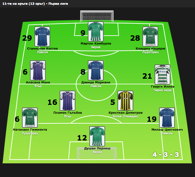 Изминалият кръг на Първа лига бе успешен за лидерите Лудогорец и Левски. "Орлите" обърнаха до 4:1 Септември на стадион "Васил Левски", докато "сините" се разправиха със 7:0 с Верея. Третият кандидат за титлата ЦСКА-София обаче не успях да стигне до успех в Стара Загора и завърши наравно 1:1 с Берое.