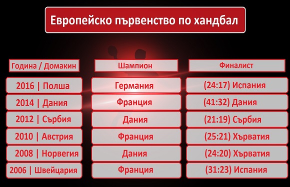 Всичко това и още много повече ще ни осигури предстоящото европейско първенство по хандбал. То ще се проведе в Хърватия от 12 до 28 януари, а според мнозина специалисти ни очаква може би най-оспорвания шампионат от всички 13 издания в историята. Едно е сигурно - организацията, атмосферата и шоуто в четирите града домакини ще бъдат на най-високо ниво.