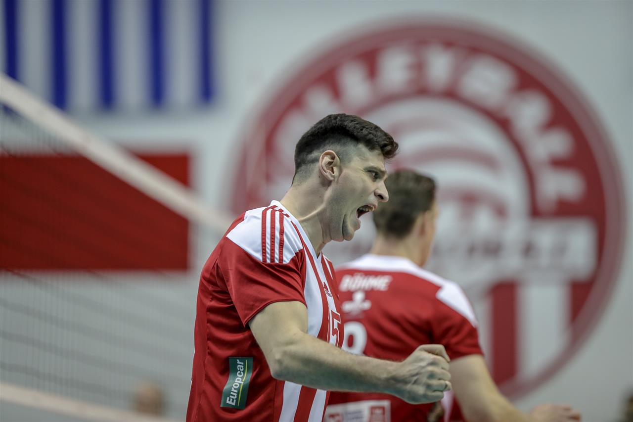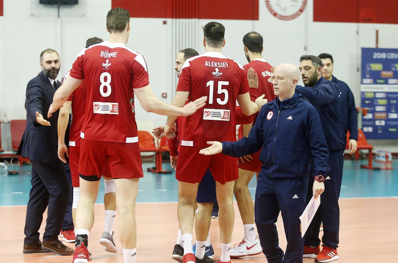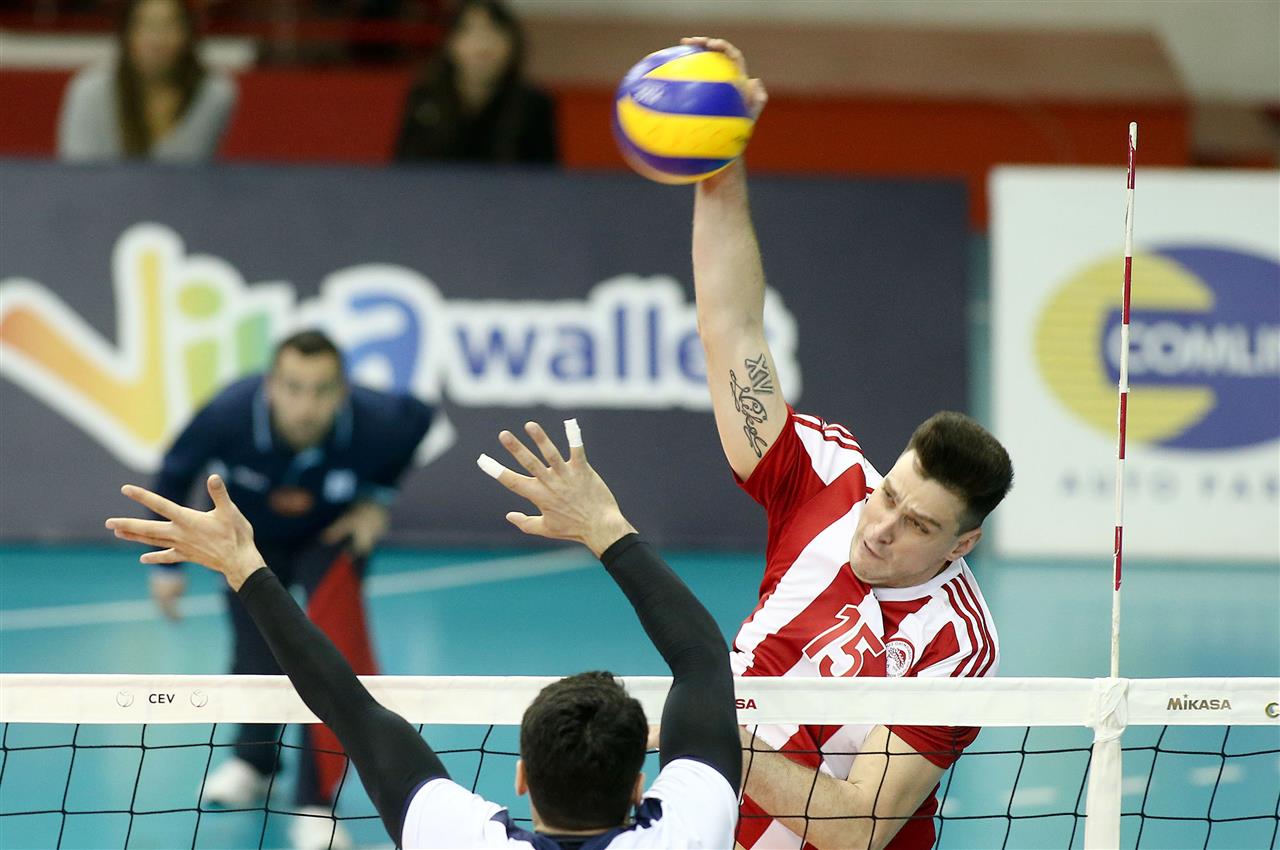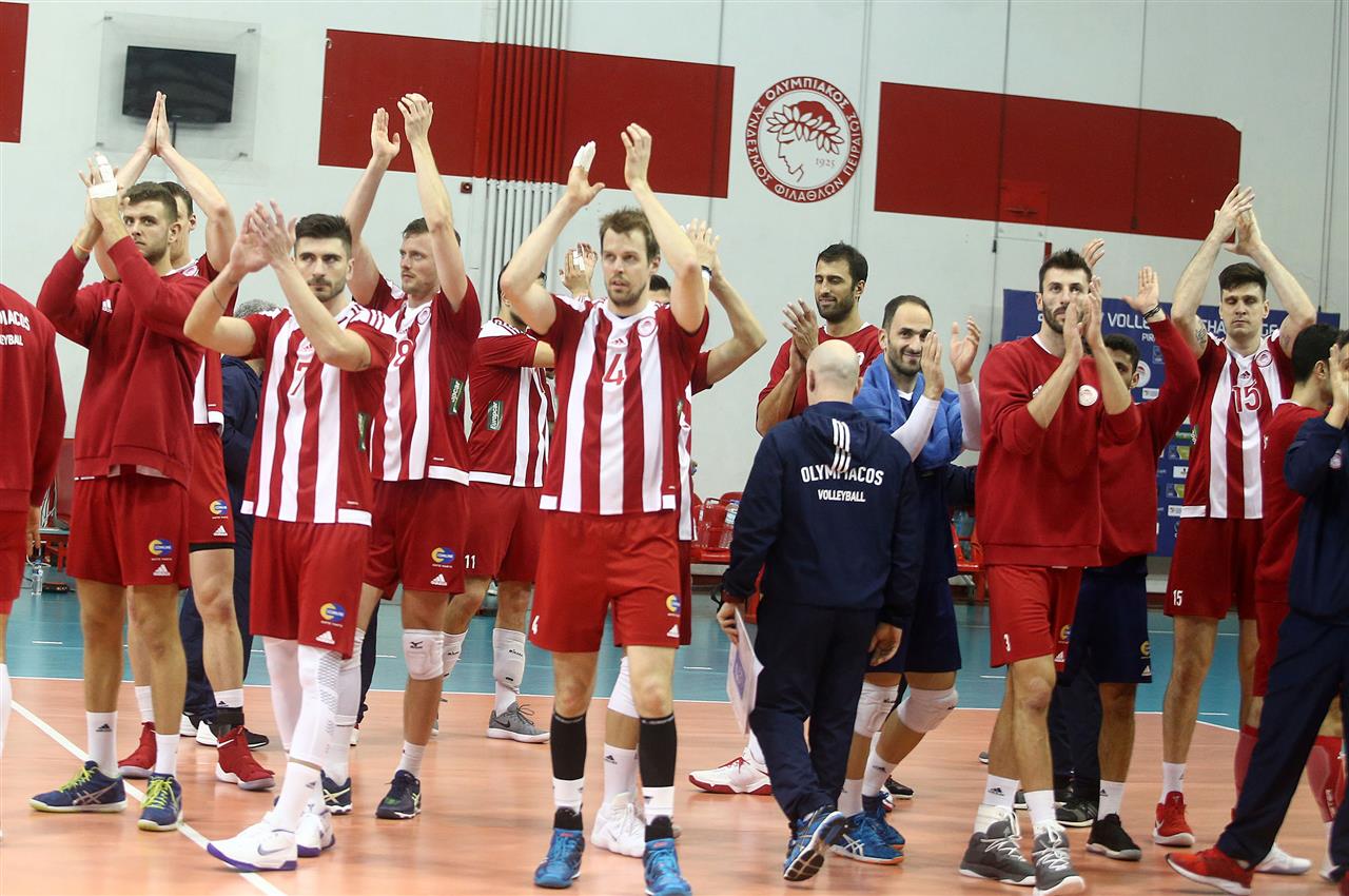 "Червено-белите" надиграха категорично азербайджанския Локомотив (Баку) с 3:0 (25:22, 25:15, 25:8) в двубой от 1/8-финалите, който се игра пред 600 зрители в зала “Мерлина Меркури” в Пирея.