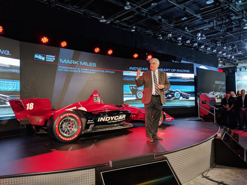 Развитието на новия болид бе поверено в ръцете на италианския производител Dallara Automobili, който бе произвел и предишния IR-12 модел, използван шест сезона. Новият автомобил пасва перфектно на шасито на двата основни производители в шампионата – Chevrolet и Honda. Минималният товар на автомобилите е увеличен с 5 кг. Тестването му от някои отбори вече е започнало, като първият официален тест ще се проведе на 9 – 10 февруари във Финикс. Сезон 2018 съдържа 17 кръга и стартира във Флорида на 11 март.