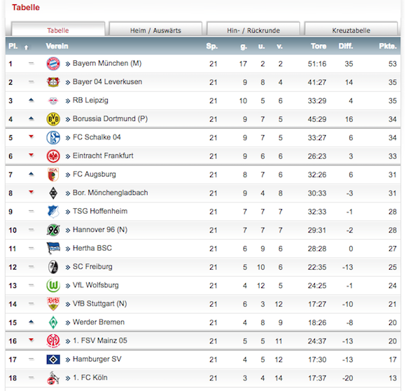 Поне този сезон ще е интересно в борбата за участие в Шампионската лига. Зад Байерн има пет отбора, разделени в рамките на само 2 точки. Зад тях пък дебнат други пет в разстояние на 4 точки.