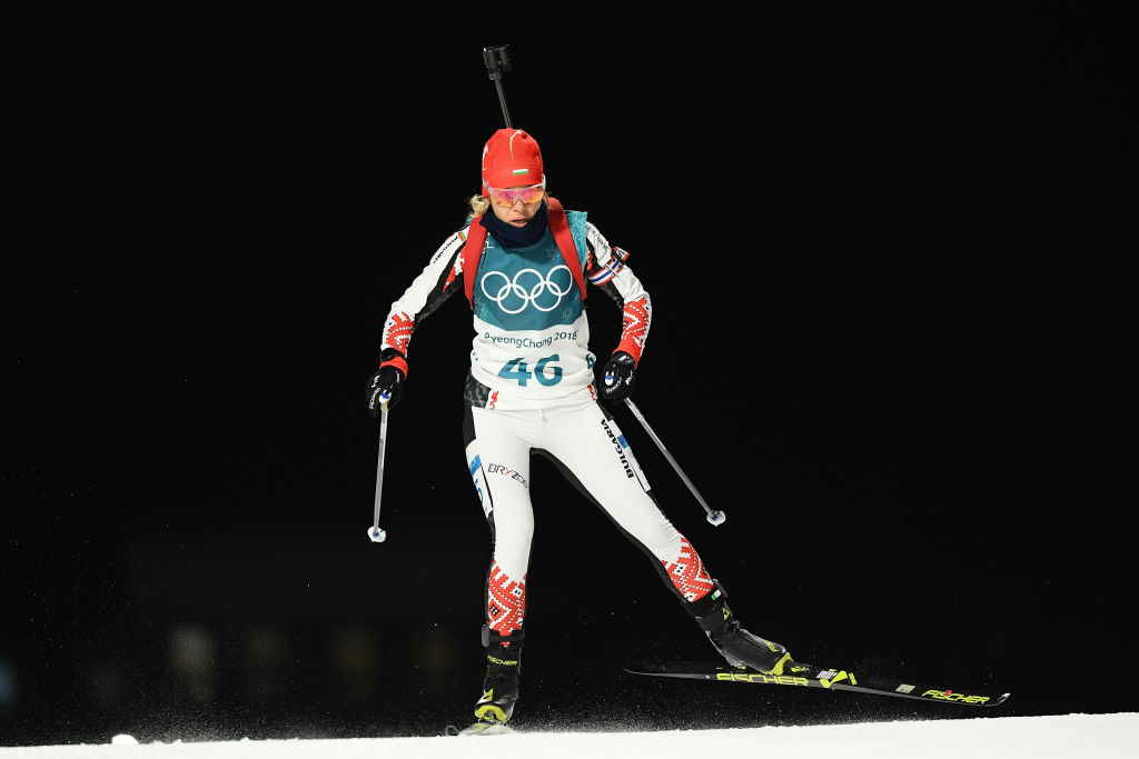 Двукратната олимпийска шампионка в спринта от Ванкувър 2010 и Сочи 2014 Анастасия Кузмина направи три грешки и завърши на 13-о място на 53.9 минути.