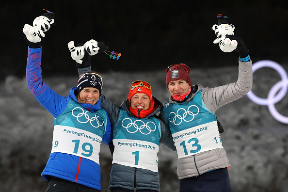 Германката Лаура Далмайер се пребори за нов златен медал от Олимпийските игри в ПьонгЧанг. След като триумфира в спринта на 7,5 км, Далмайер стана шампионка и в преследването на 10 км в биатлона. Тя е първата в историята на Олимпийските игри биатлонистка, която успява да спечели преследването, след като е била първа и в спринта. Стартиралата от първа позиция германка изпусна водачеството съвсем за кратко, отстъпвайки го на Анастасия Кузмина (Словакия). Кузмина грабна сребърния медал след финален спринт с французойката Анаис Бесконд, която пък взе бронзовото отличие.